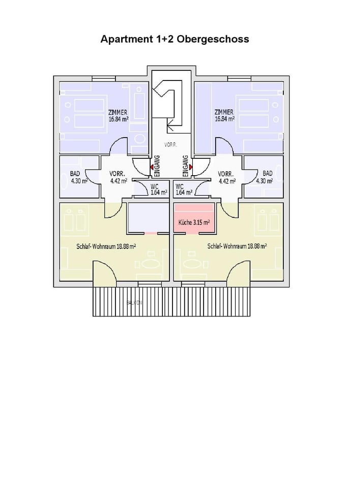 2 bathrooms with a shower cabinet and toilet, balcony, safe